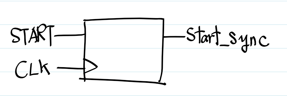 예를 들어 START라는 input이 asynchronous 하다고 가정해보자. 회로의 구조에 따라 다르겠지만, 회로가 오동작할 가능성도 생기고, 별로 좋지는 않다. 특히 이로 인해서 f/f의 값 저장에 문제가 생긴다거나 output이 달라지는 경우, 회로를 수정할 필요가 있다. 그래서 input을 강제로 synchronous하게 만드는 방법이 있는데 아래 그림처럼 input을 먼저 손보는 것이다.